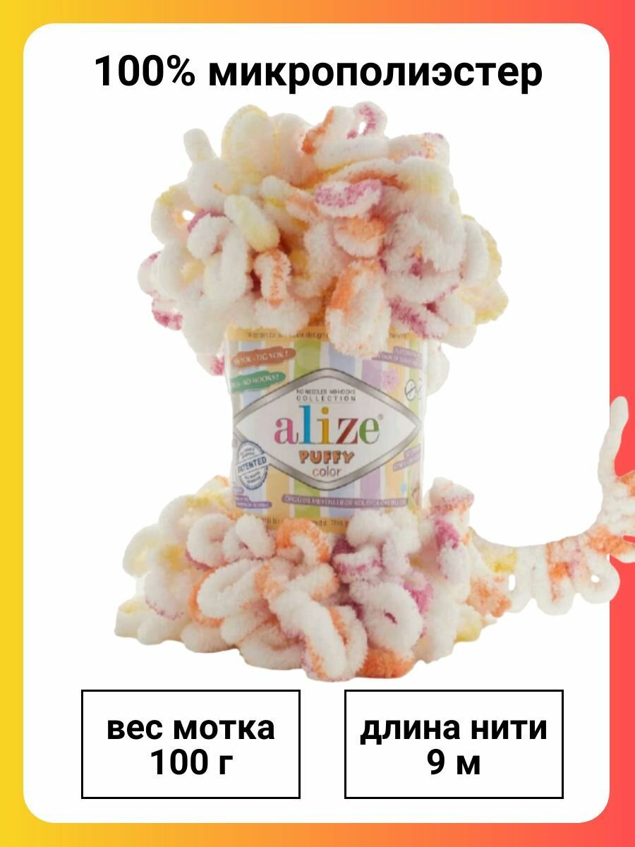 Пряжа для вязания ALIZE 'Puffy Color', 100г, 9м (100% микрополиэстер) (6523 секционный), 5 мотков 738 ₽