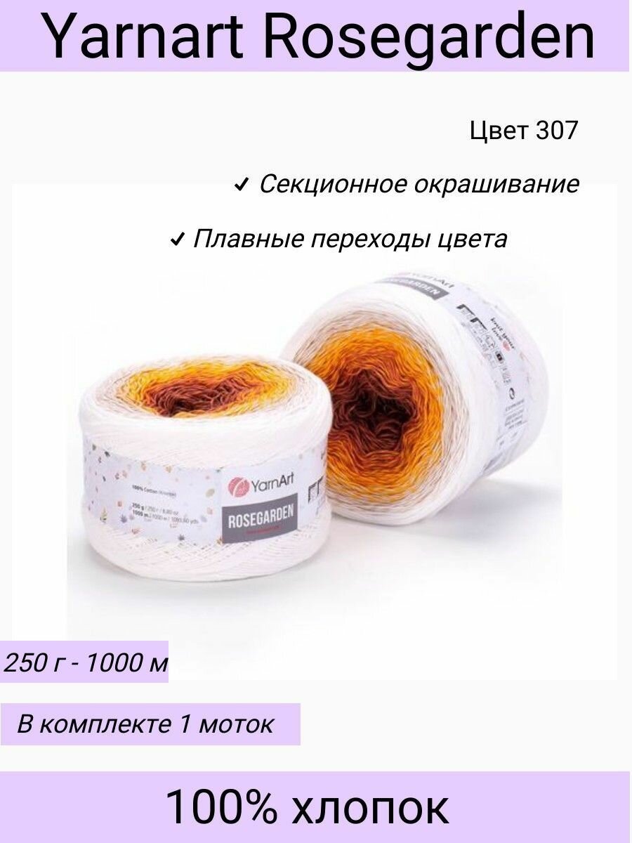 Пряжа YarnArt Rosegarden / цвет 307 бел-жёлтый-терракот/ розегарден омбре секционная градиент / Розгарден /1000 м, 250 г / 100% хлопок информация: