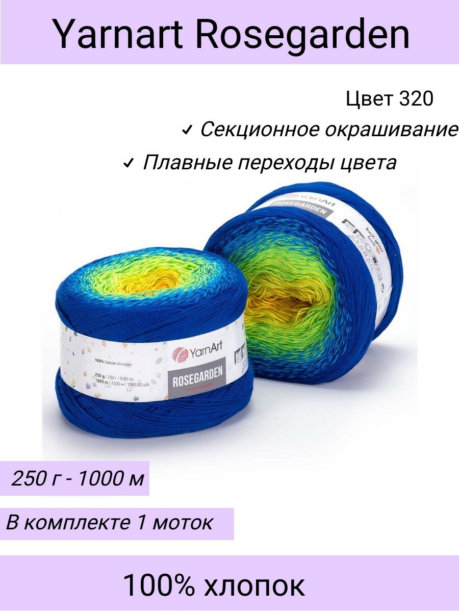 Пряжа YarnArt Rosegarden василек-салатовый-желтый (320), 100%хлопок, 1000м, 250г, 1шт информация: