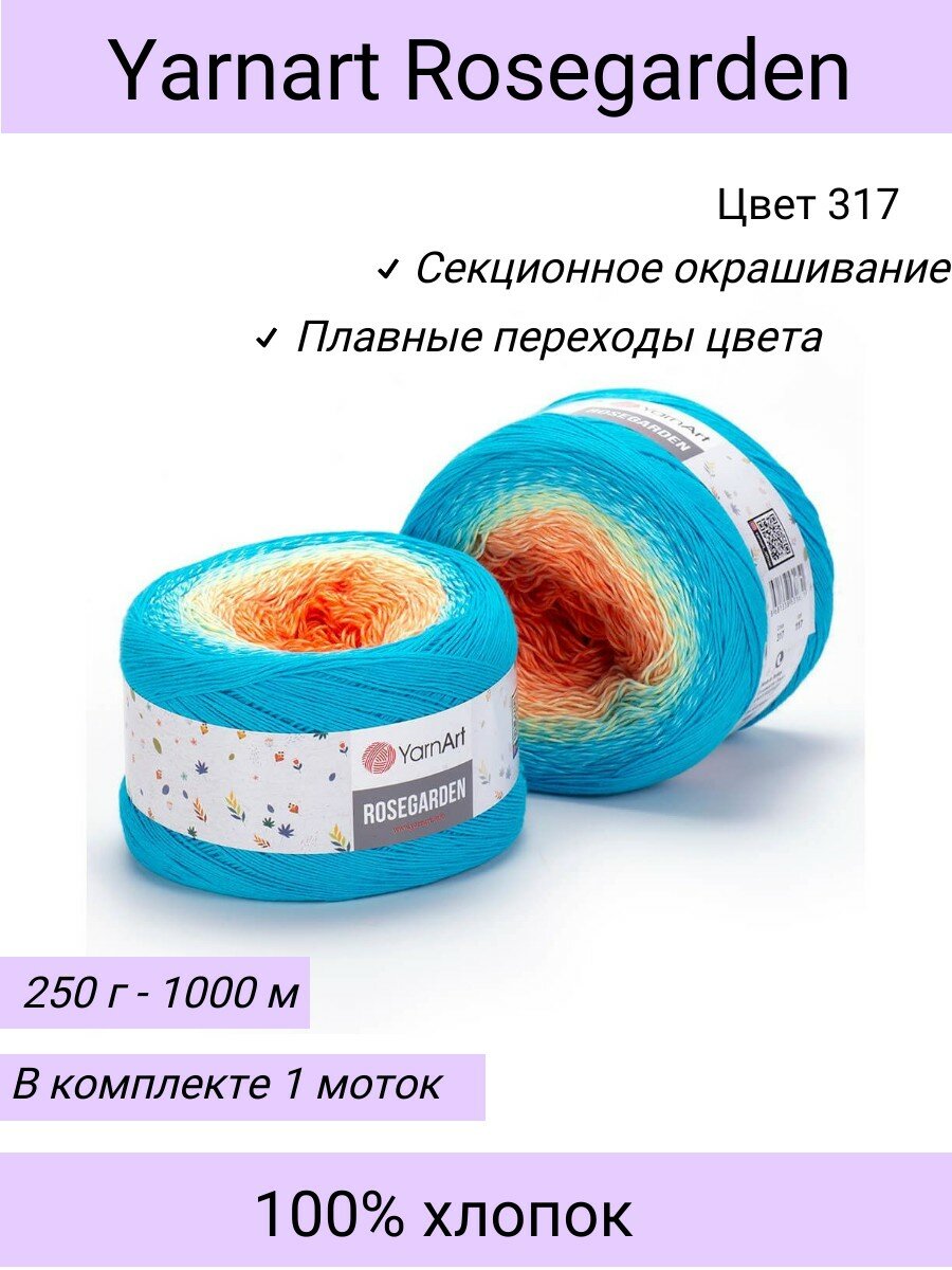 10 цен на Пряжа YarnArt Rosegarden / цвет 317 бирюза-желтый-оранжевый/ розегарден омбре секционная градиент / Розгарден /1000 м, 250 г / 100% хлопок