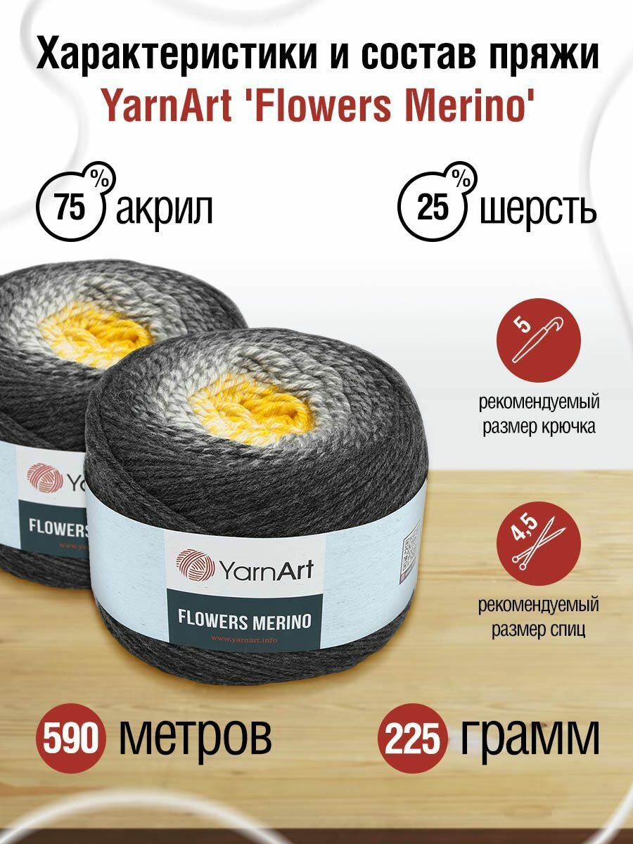 Пряжа для вязания YarnArt 'Flowers Merino' 225гр 590м (25% шерсть, 75% акрил) (536 секционный), 2 мотка информация: