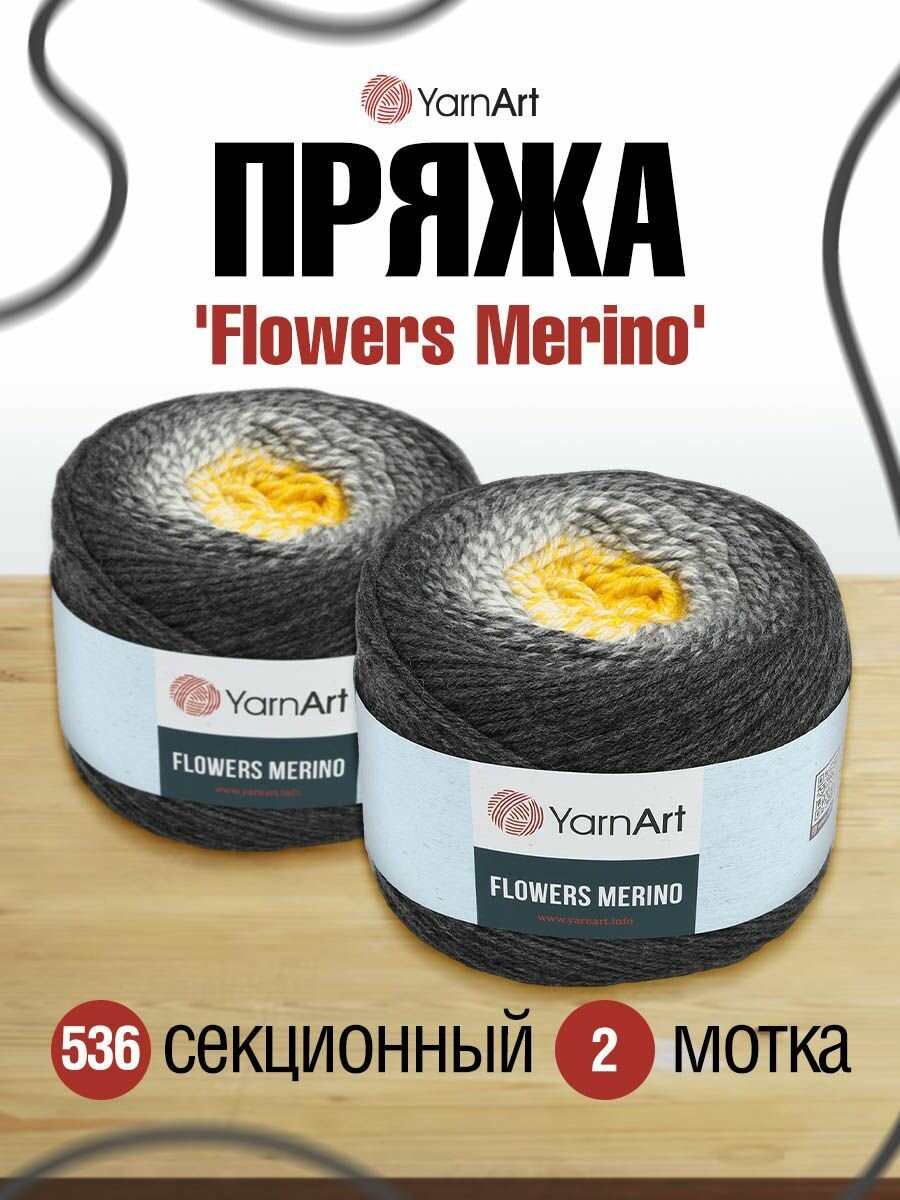 10 цен на Пряжа для вязания YarnArt 'Flowers Merino' 225гр 590м (25% шерсть, 75% акрил) (536 секционный), 2 мотка