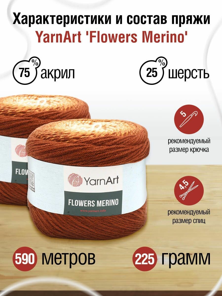 Отзывы на Пряжа Flowers Merino (YarnArt), корич/беж/суров - 537, 25% шерсть, 75% акрил, 2 мотка, 225 г., 590 м.