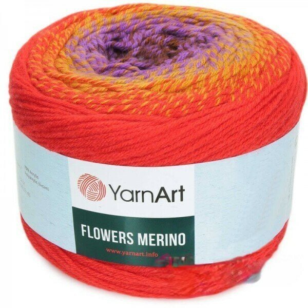 Пряжа Flowers Merino (YarnArt), васил/желт/красн - 535, 25% шерсть, 75% акрил, 2 мотка, 225 г, 590 м.