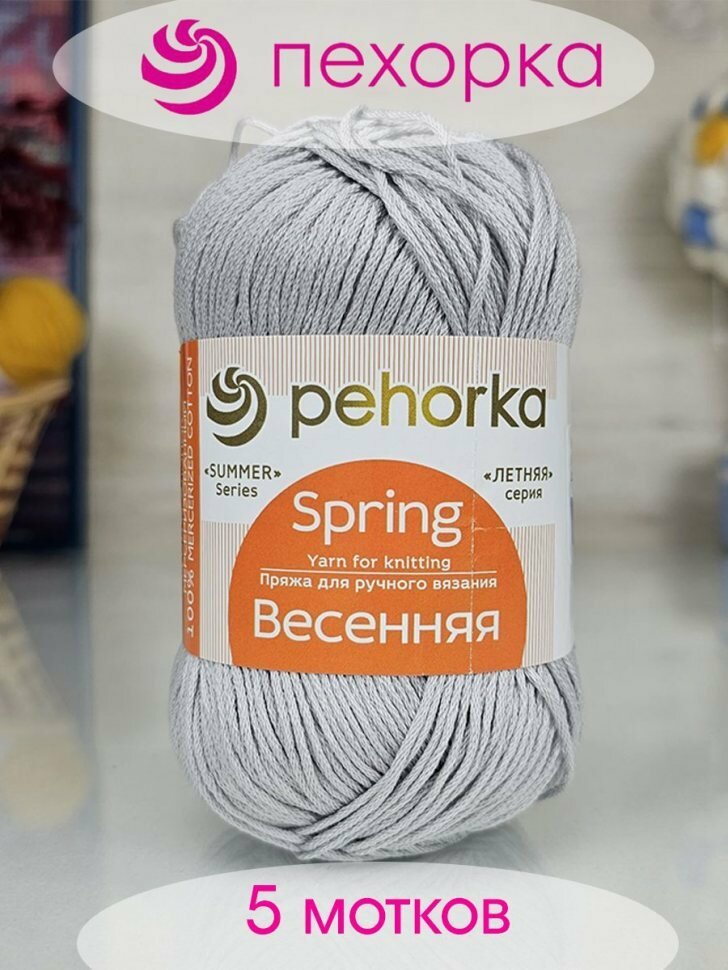 Пряжа Пехорка Весенняя светло-серый (008), 100%мерсеризованный хлопок, 250м, 100г, 5шт