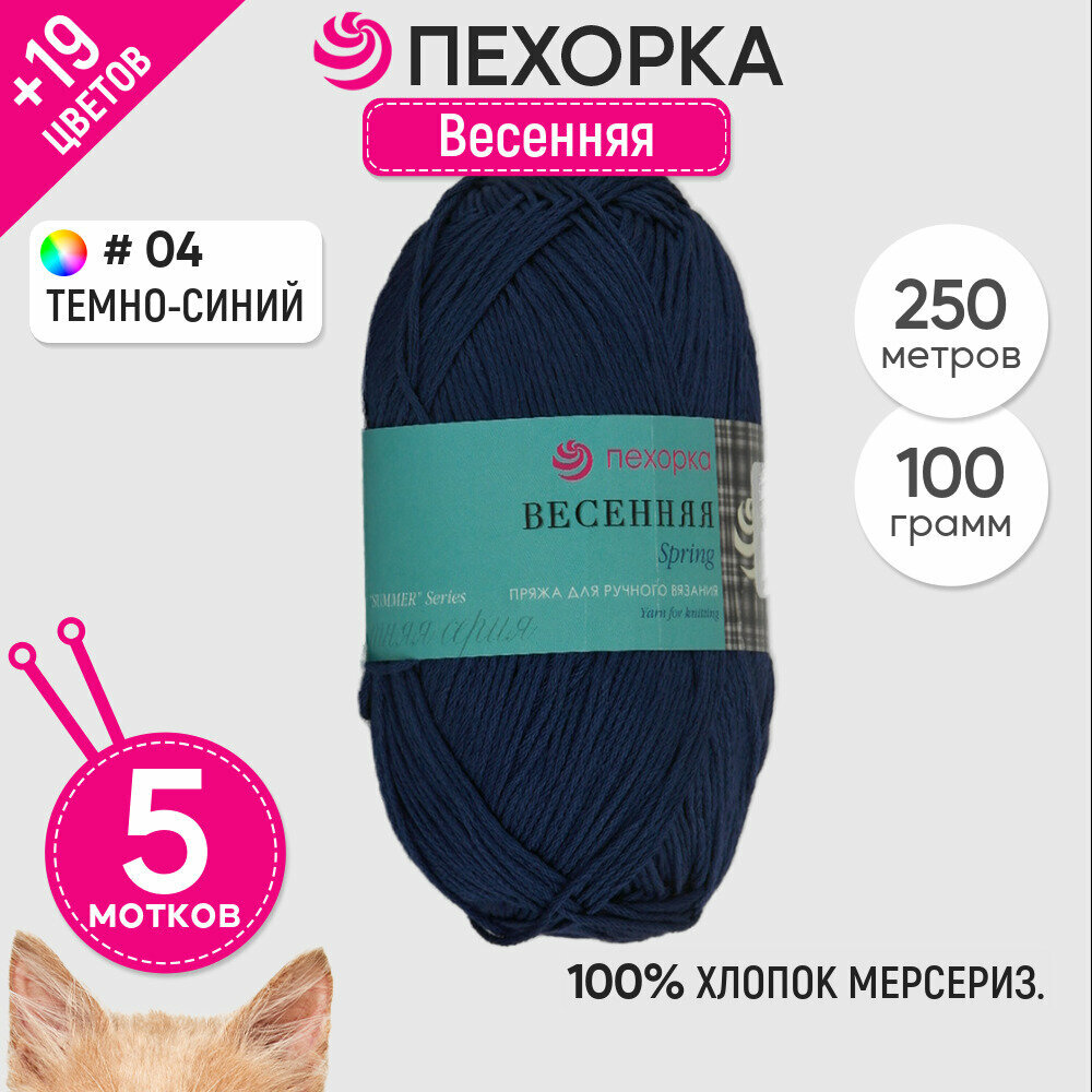 Пряжа Пехорка Весенняя темно-синий (004), 100%мерсеризованный хлопок, 250м, 100г, 5шт
