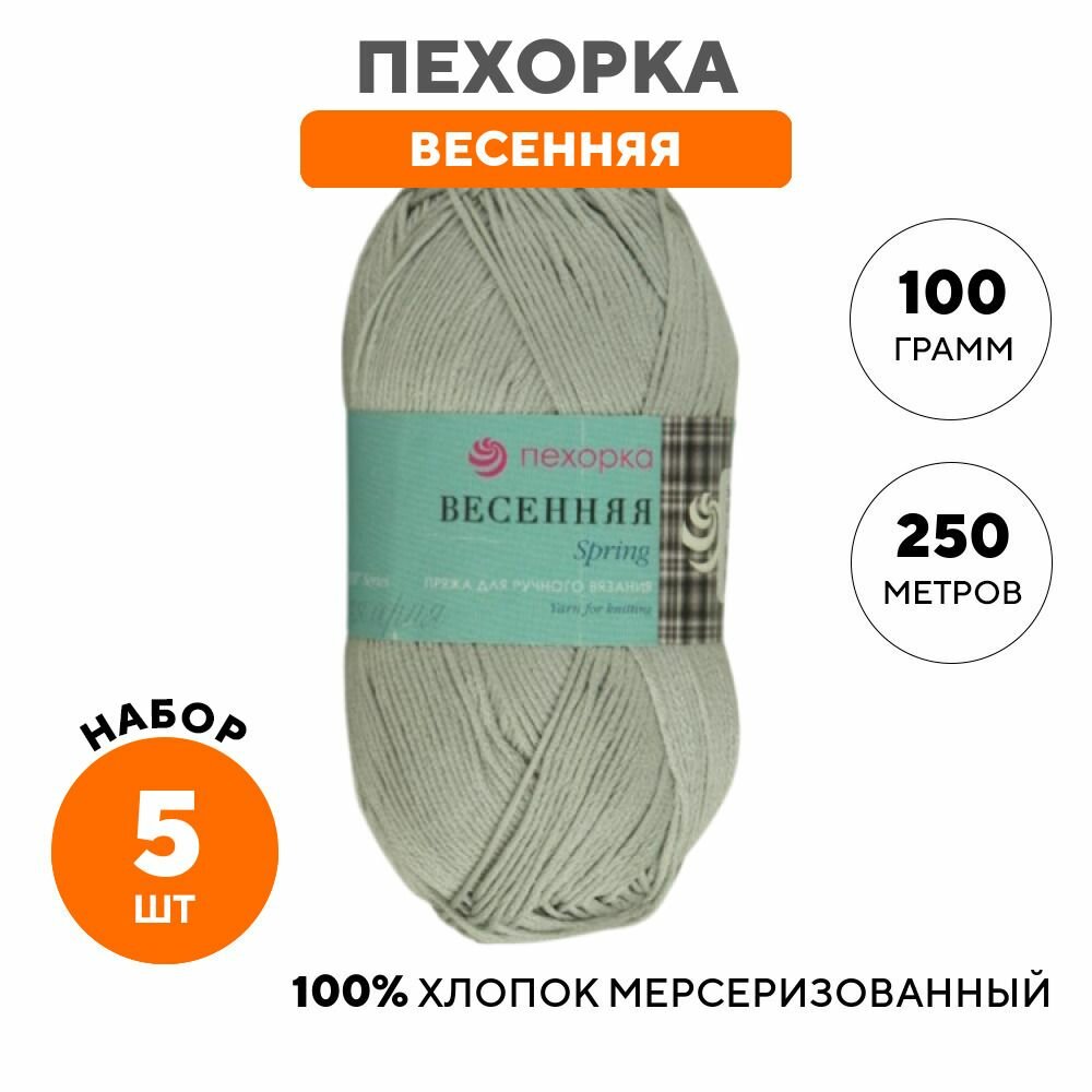 Пряжа для вязания Пехорка "Весенняя" 5 шт, Светло-серый №08 информация: