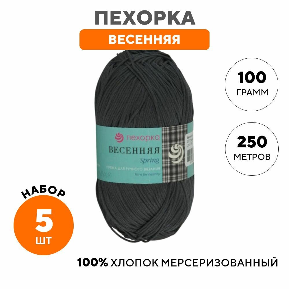 Пряжа для вязания Пехорка 'Весенняя', 100г, 250м (100% мерсеризованный хлопок) (02-Черный), 5 мотков