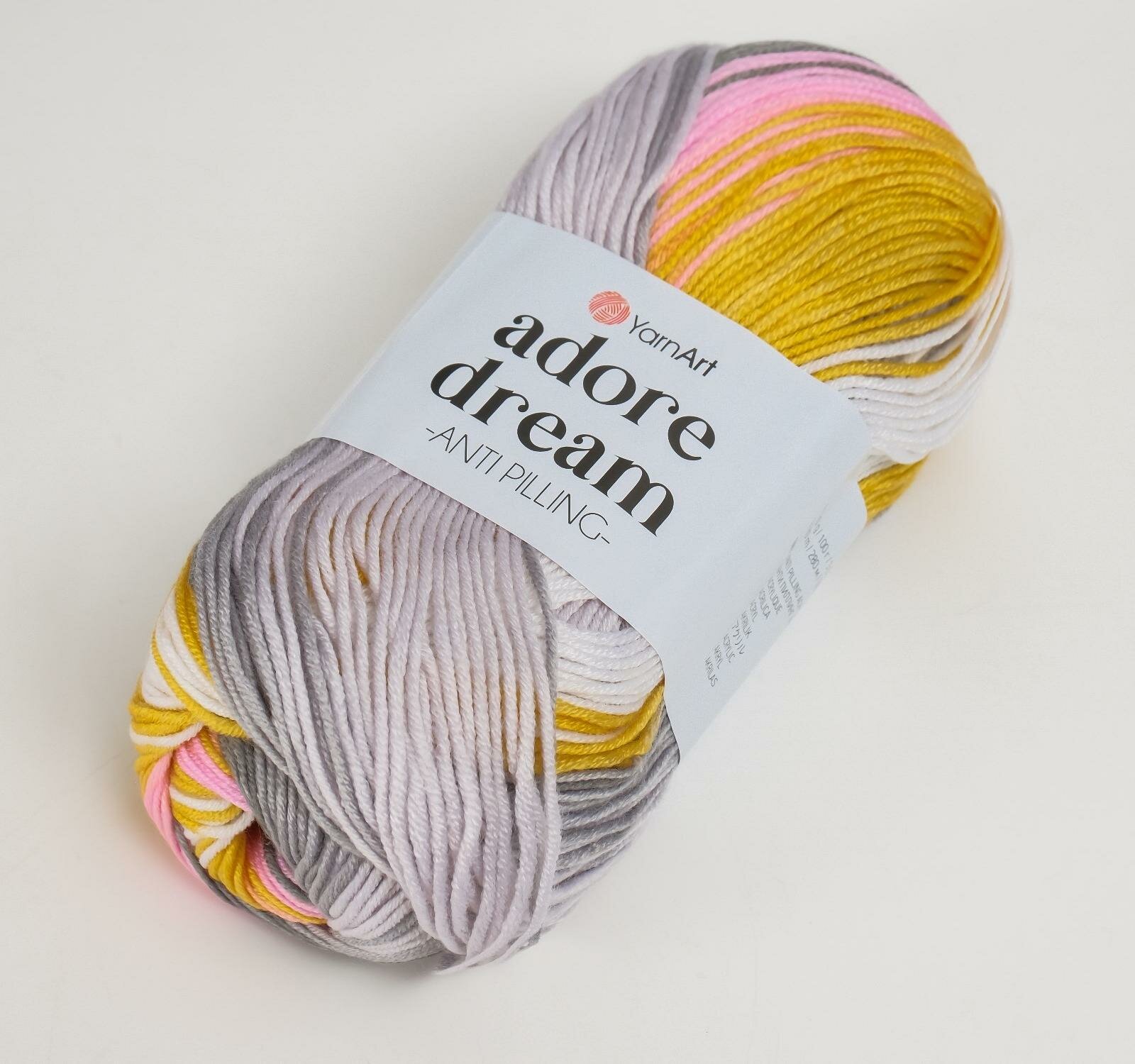 Отзывы на Пряжа Yarnart Adore dream белый-желтый-розовый-серый (1064), 100%акрил, 280м, 100г, 1шт