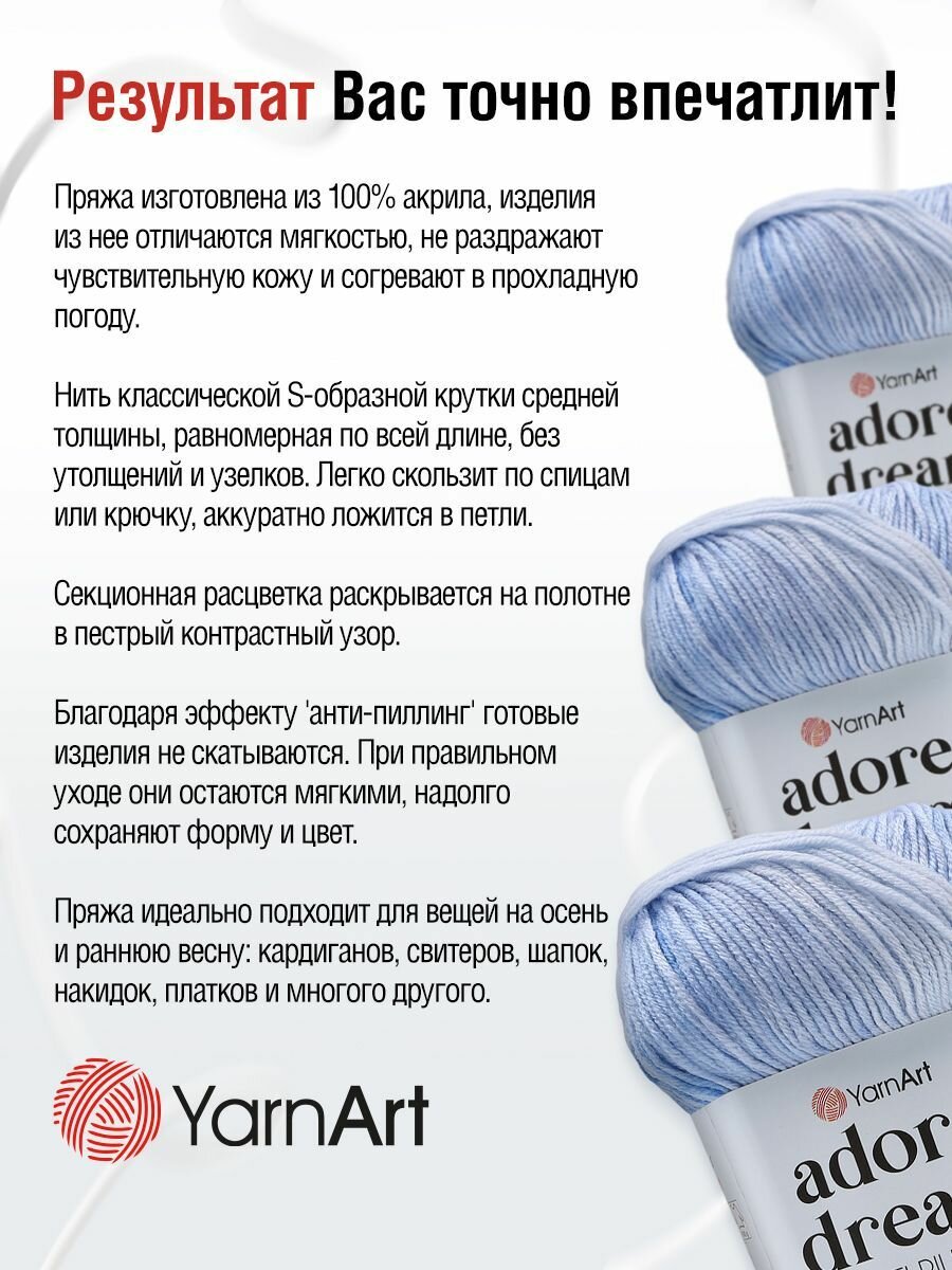 Пряжа Yarnart Adore Dream 1064 - 3 шт, антипиллинг акрил 857 ₽