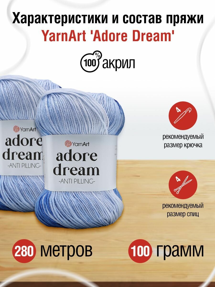 Пряжа для вязания YarnArt 'Adore Dream' 100гр 280м (100% акрил с эффектом анти-пиллинга) (1050 секционный), 5 мотков 1 737 ₽
