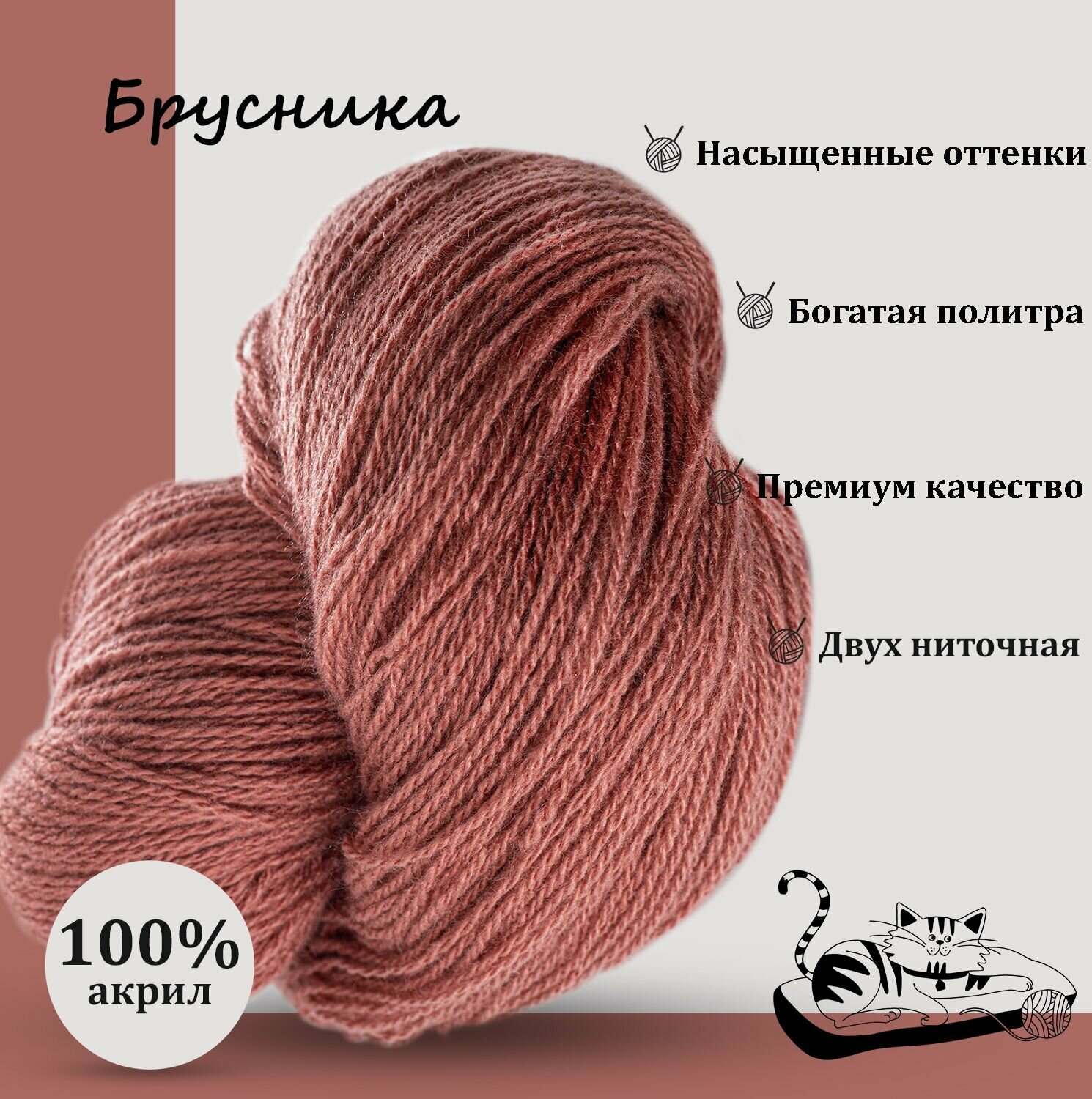 10 цен на Карачаевская пряжа мягкая в пасмах нитки 100 % акрил для вязания 600-650м/250-280гр, Брусника