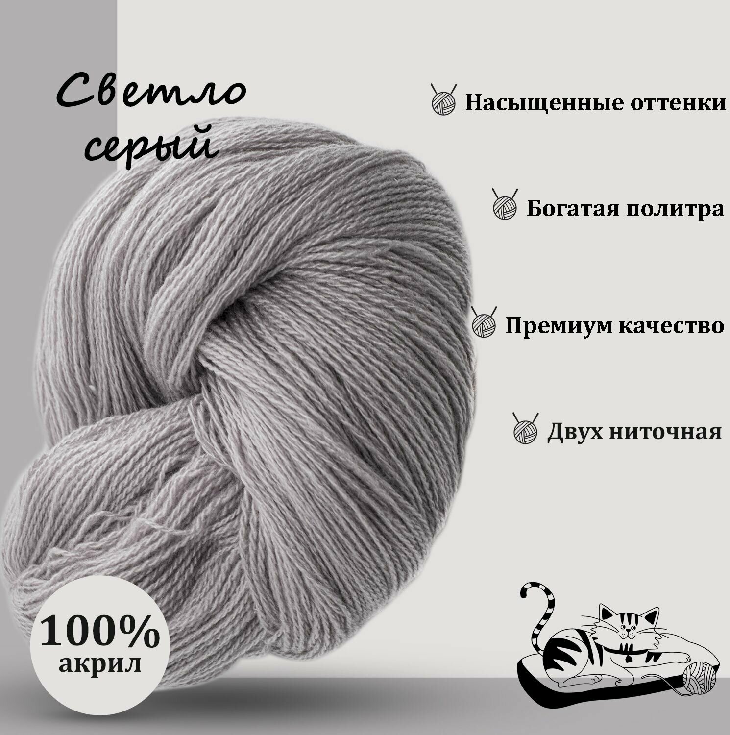 10 цен на Карачаевская пряжа мягкая в пасмах нитки 100 % акрил для вязания 600-650м/250-280гр, Светло - серый