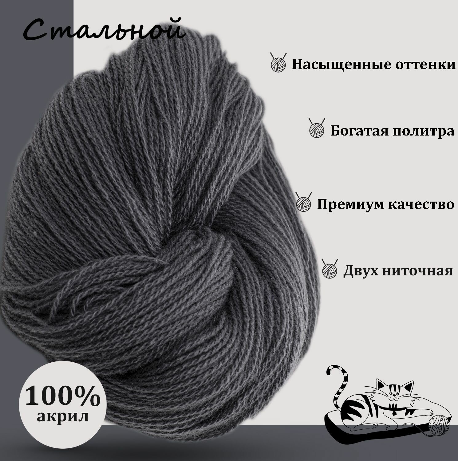 Карачаевская пряжа мягкая в пасмах нитки 100 % акрил для вязания 600-650м/250-280гр, Стальной информация: