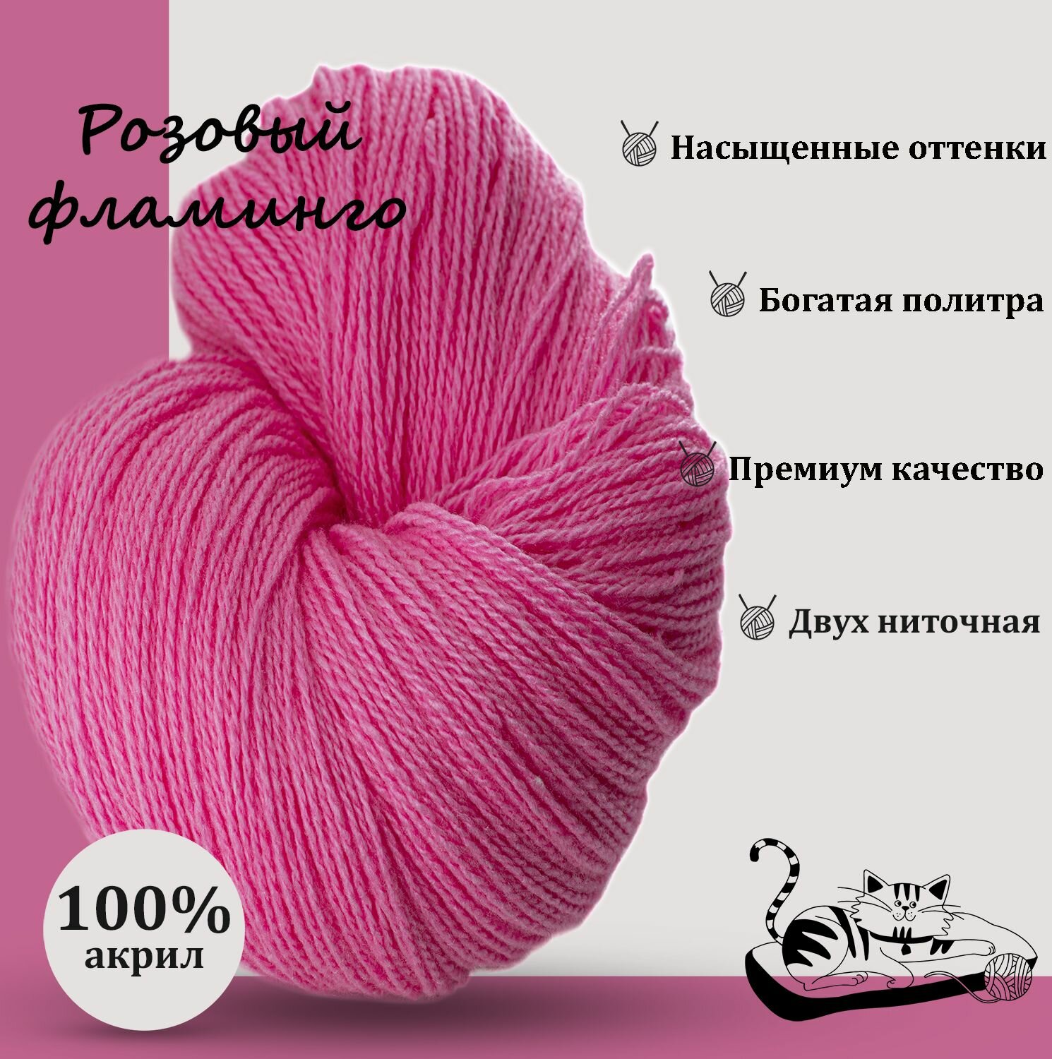 10 цен на Карачаевская пряжа мягкая в пасмах нитки 100 % акрил для вязания 600-650м/250-280гр, Розовый фламинго