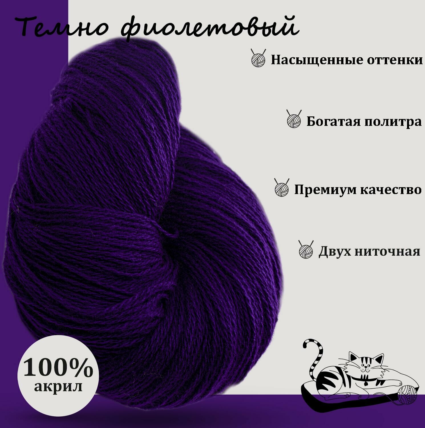 10 цен на Карачаевская пряжа мягкая в пасмах нитки 100 % акрил для вязания 600-650м/250-280гр, Тёмно - фиолетовый