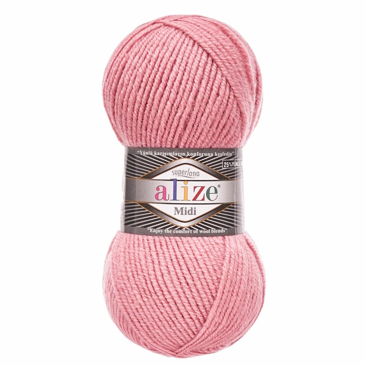 Пряжа для вязания ALIZE 'Superlana MIDI', 100г, 170м (25% шерсть, 75% акрил) (204 розовый), 5 мотков информация: