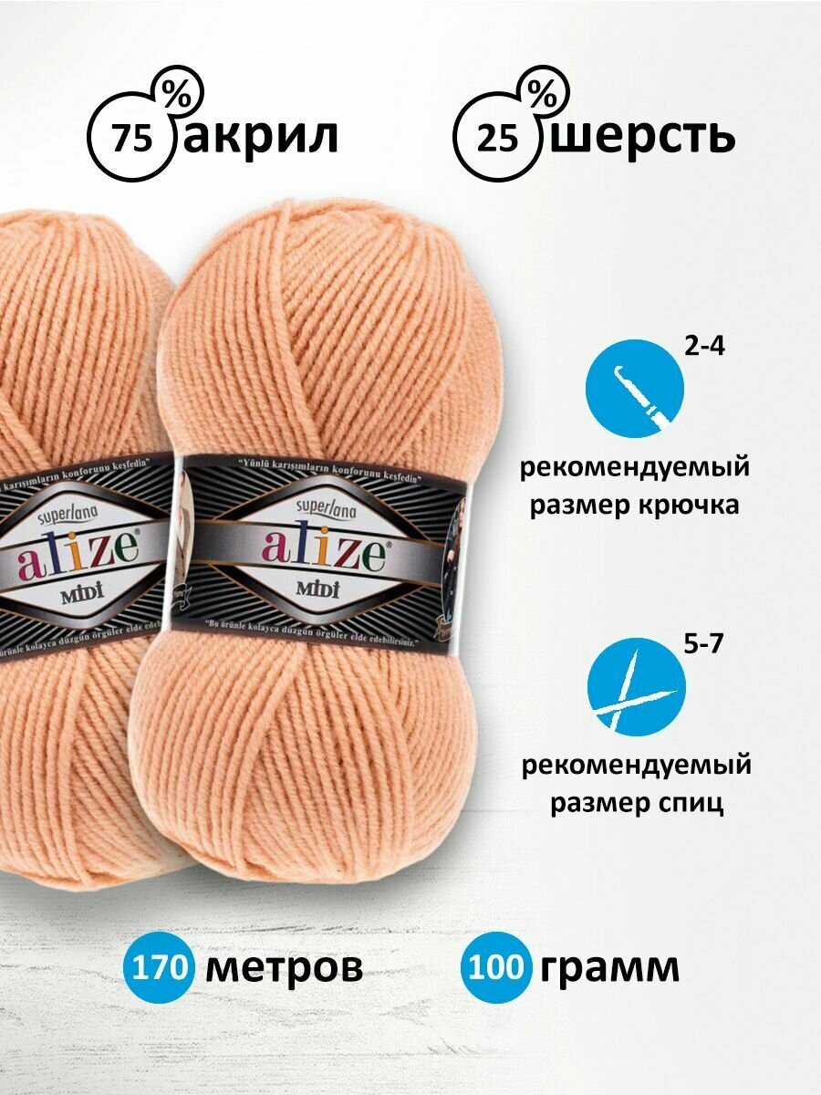 Пряжа Alize Superlana midi (Ализе Суперлана миди) - 2 шт Цвет: 310 шампань, 75% акрил 25% шерсть, 100 г 170 м