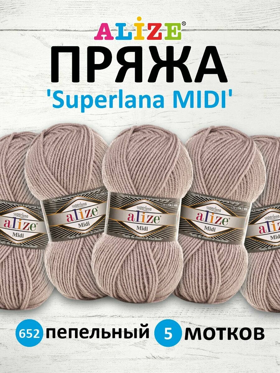 Пряжа Alize Superlana Midi 652 пепельный, 100 г, 170 м, 5 штук информация: