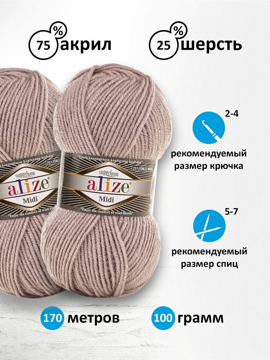 Пряжа для вязания ALIZE 'Superlana MIDI', 100г, 170м (25% шерсть, 75% акрил) (541 норка), 5 мотков
