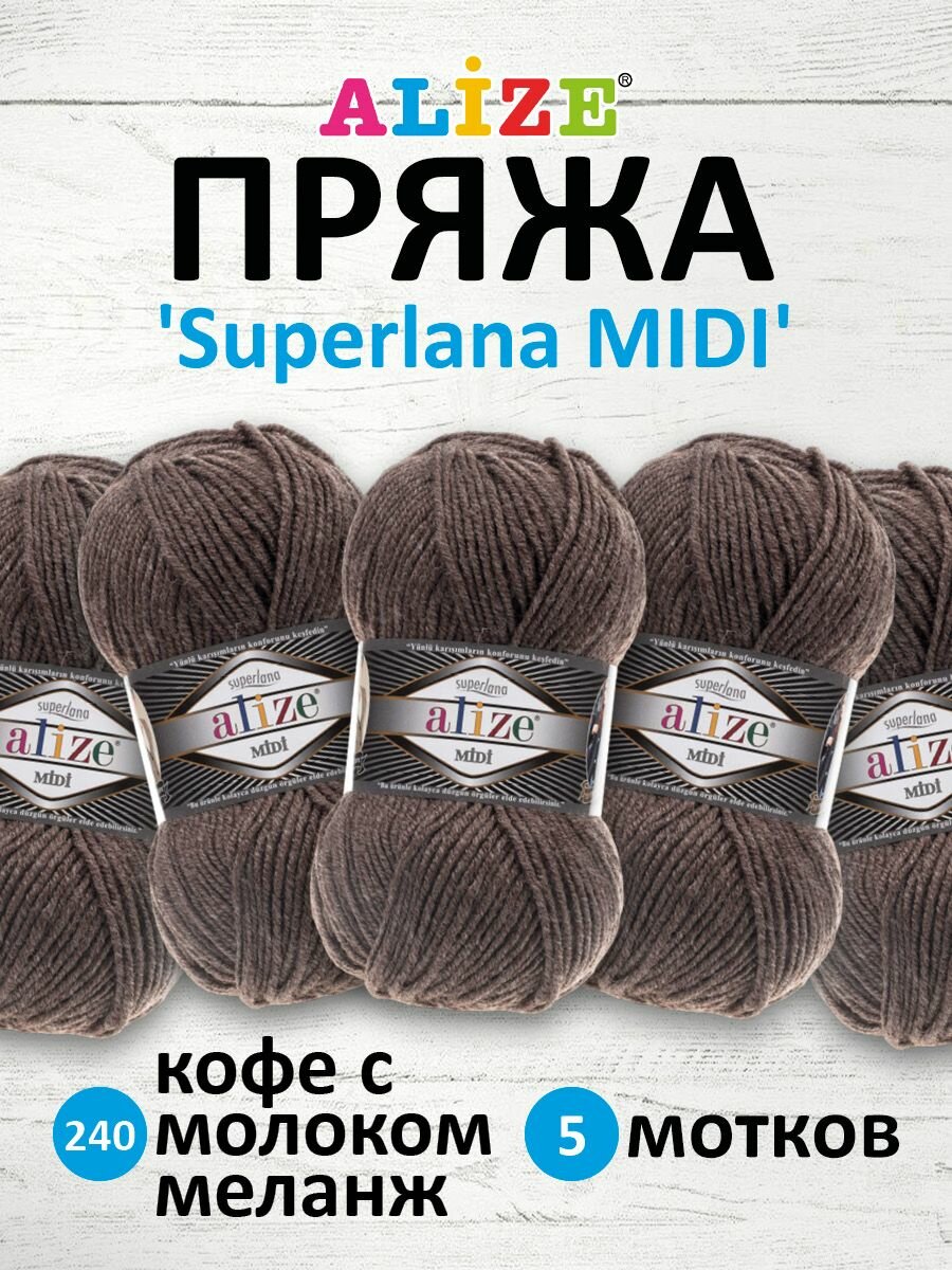 10 цен на Пряжа Alize SUPERLANA MIDI кофе с молоком меланж (240), 5 шт