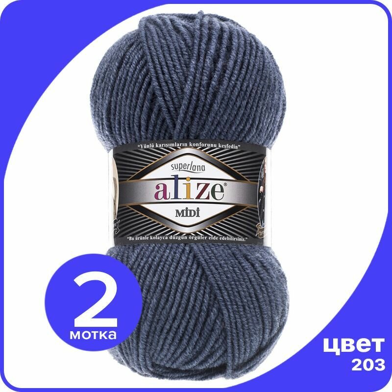Пряжа Alize Superlana Midi джинс/меланж (203), 25%шерсть/75%акрил, 170м, 100г, 2шт информация: