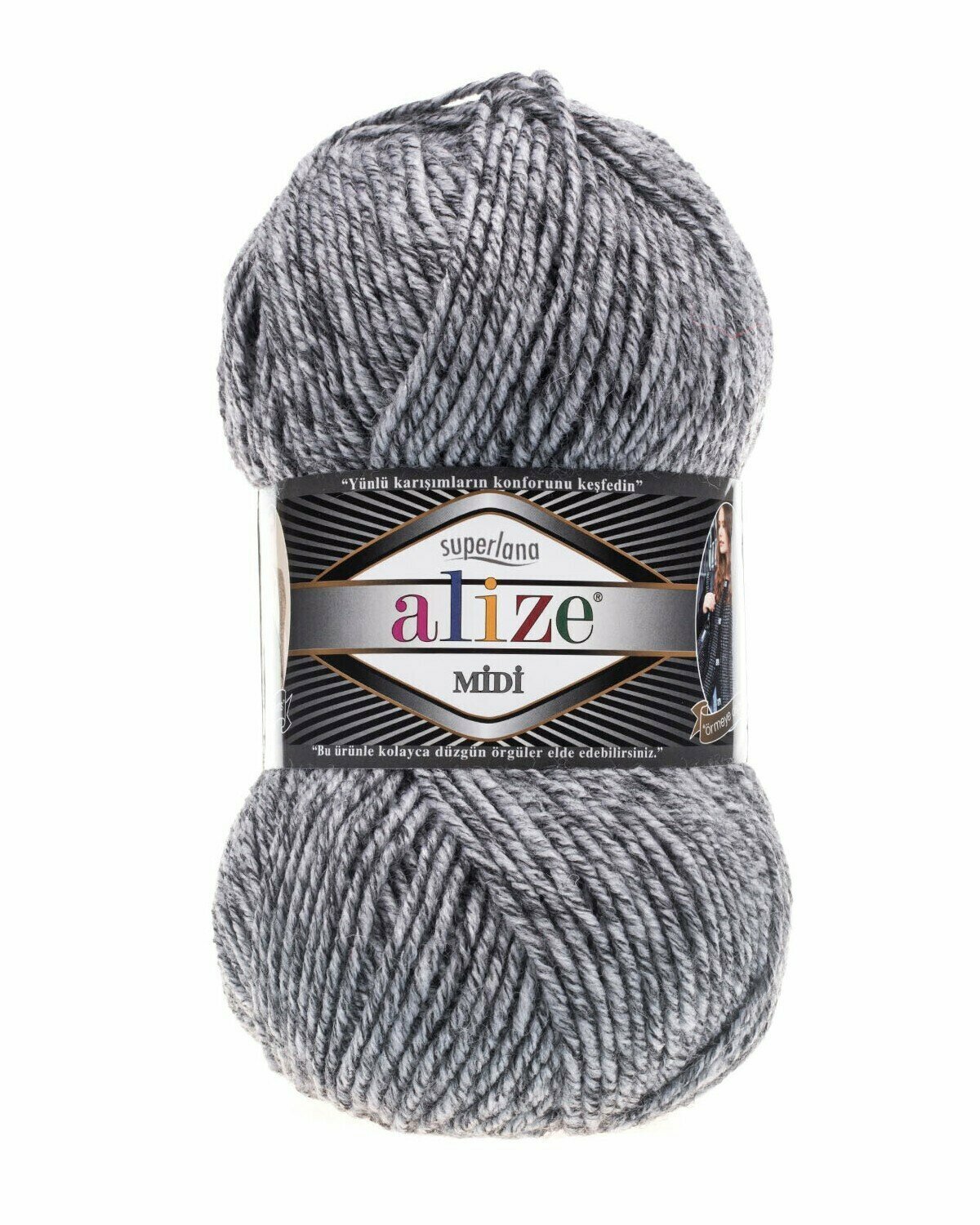 Пряжа Alize Superlana Midi серый меланж (801), 25%шерсть/75%акрил, 170м, 100г, 1шт информация: