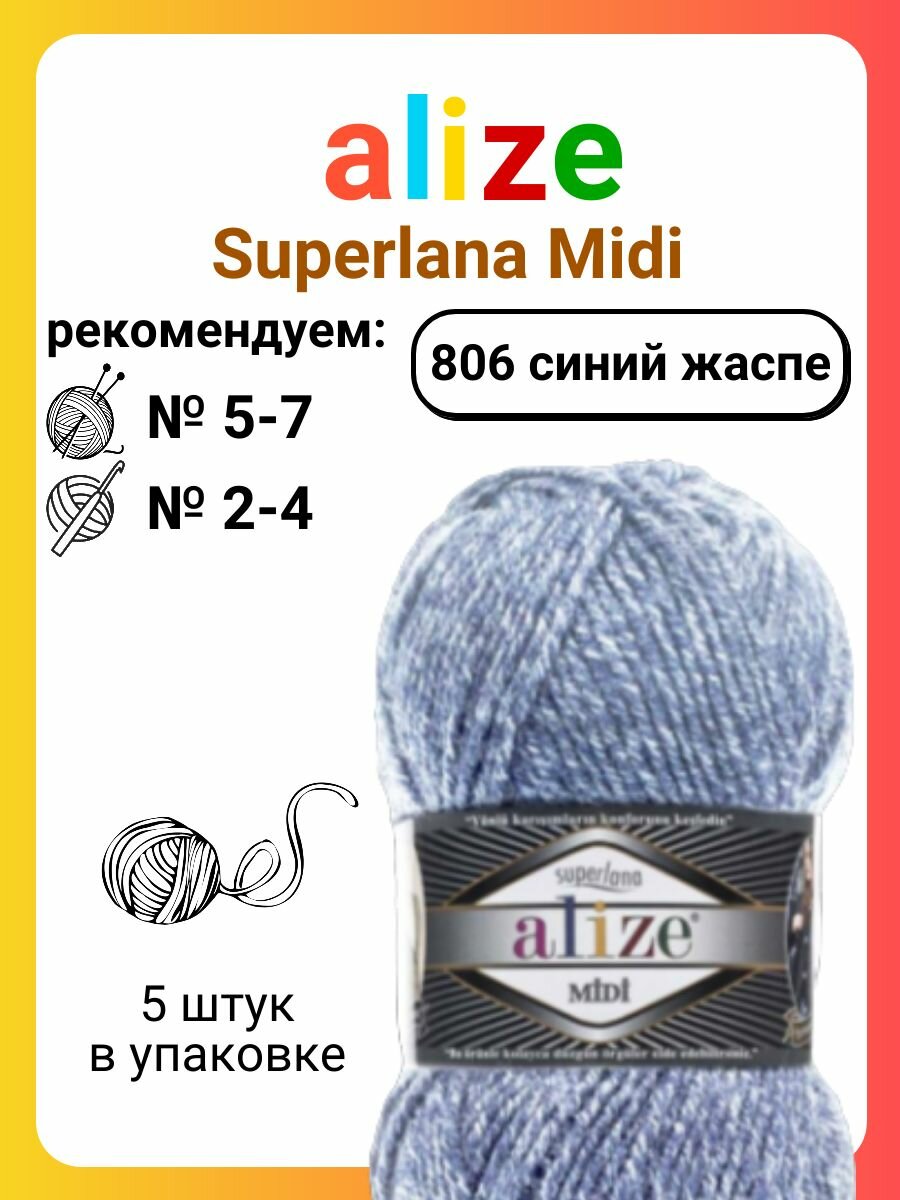 Отзывы на Пряжа Alize Superlana Midi джинсовый меланж (806), 25%шерсть/75%акрил, 170м, 100г, 5шт