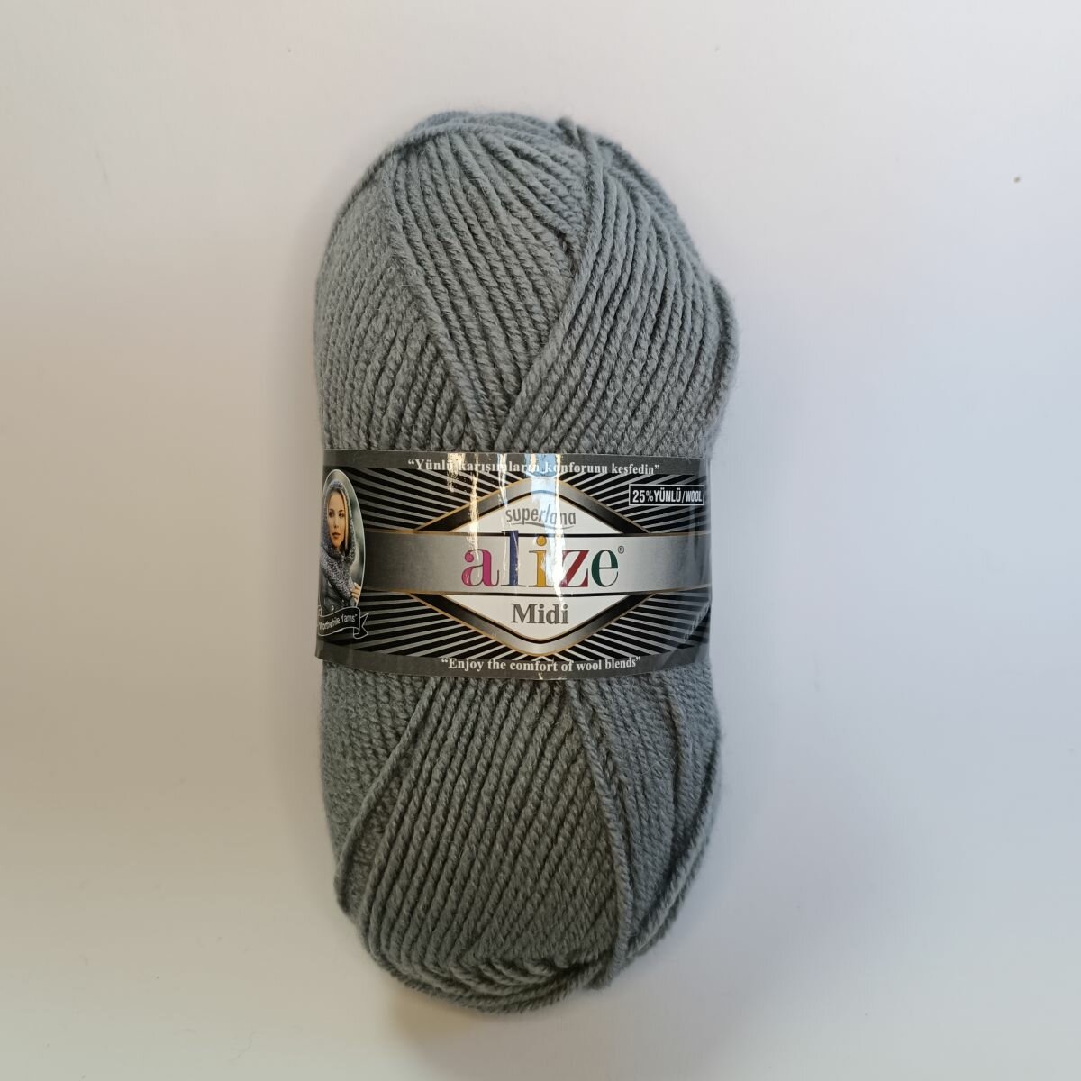 Пряжа ALIZE SUPERLANA MIDI, серый - 87, 25% шерсть, 75% акрил, 5 мотков, 100 г, 170 м.