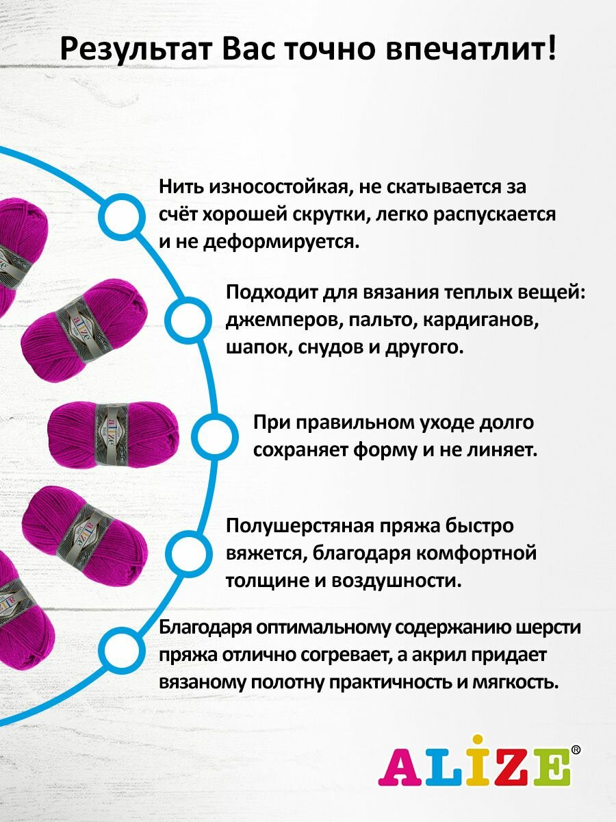 Отзывы на Пряжа для вязания ALIZE 'Superlana MIDI', 100г, 170м (25% шерсть, 75% акрил) (209 фиалковый), 5 мотков