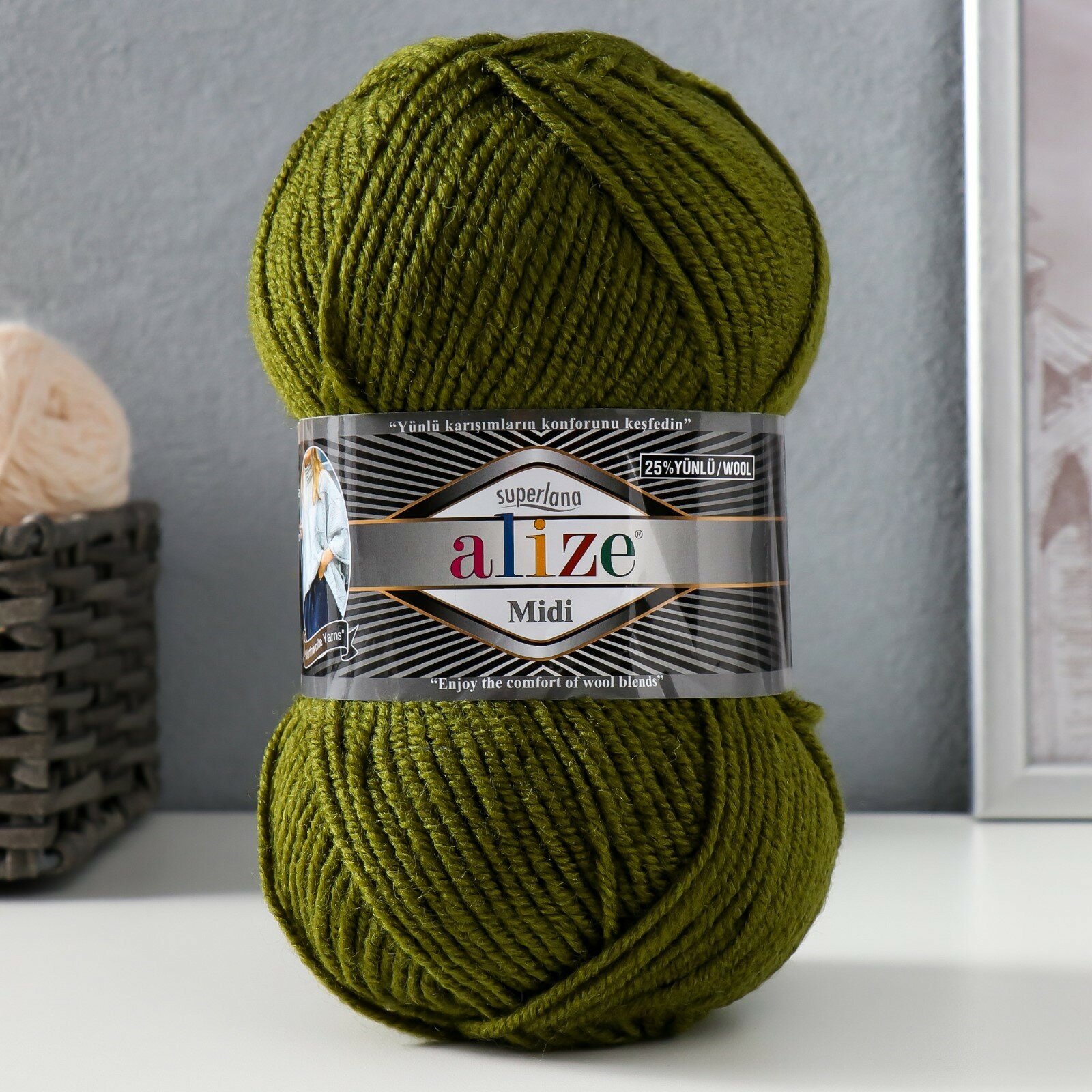 10 цен на Пряжа Alize Superlana Midi оливковый (620), 25%шерсть/75%акрил, 170м, 100г, 1шт