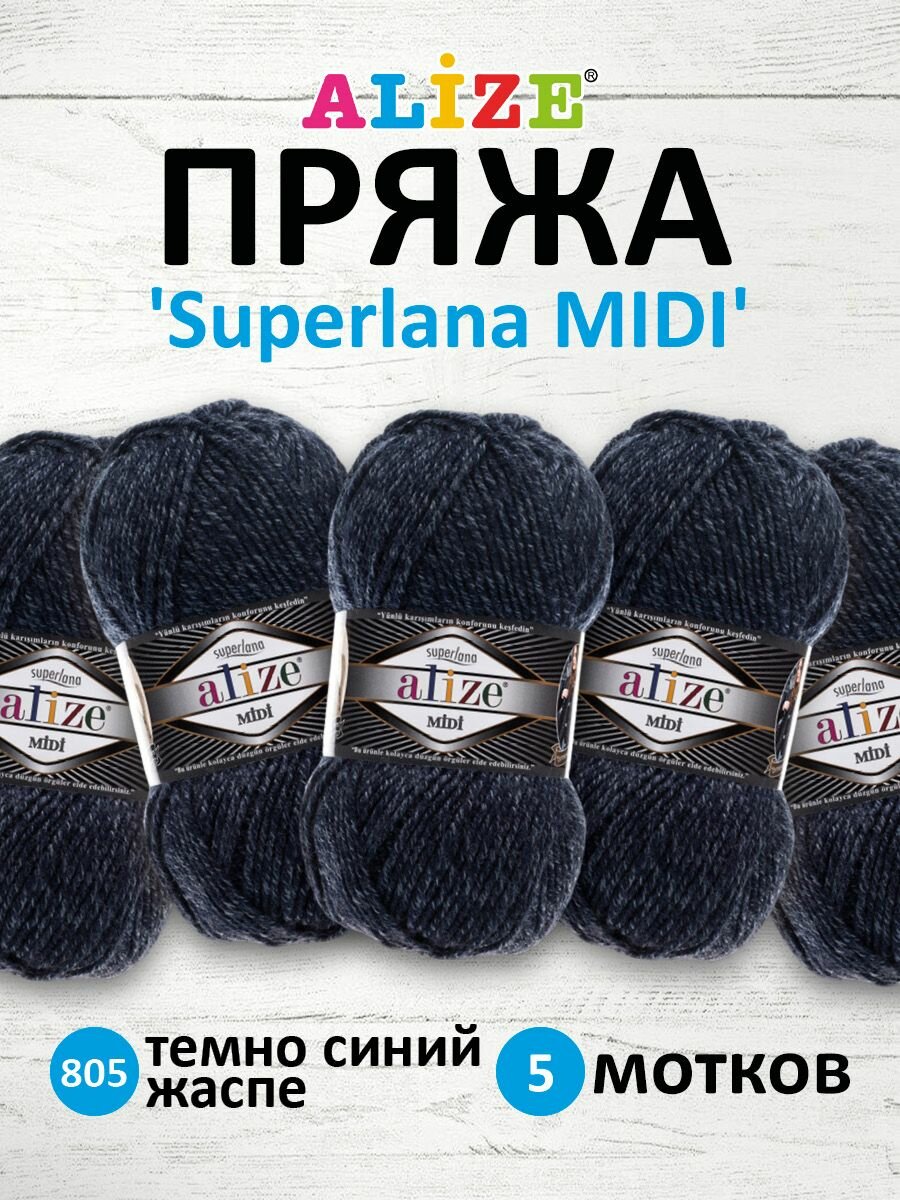 Отзывы на Пряжа ALIZE SUPERLANA MIDI, т.синий меланж - 805, 25% шерсть, 75% акрил, 5 мотков, 100 г., 170 м.