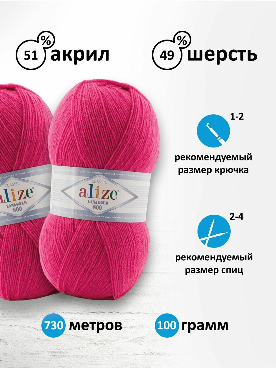 Пряжа для вязания ALIZE 'Lanagold 800', 100г, 730м (49% шерсть, 51% акрил) (798 бугенвиллия), 5 мотков информация: