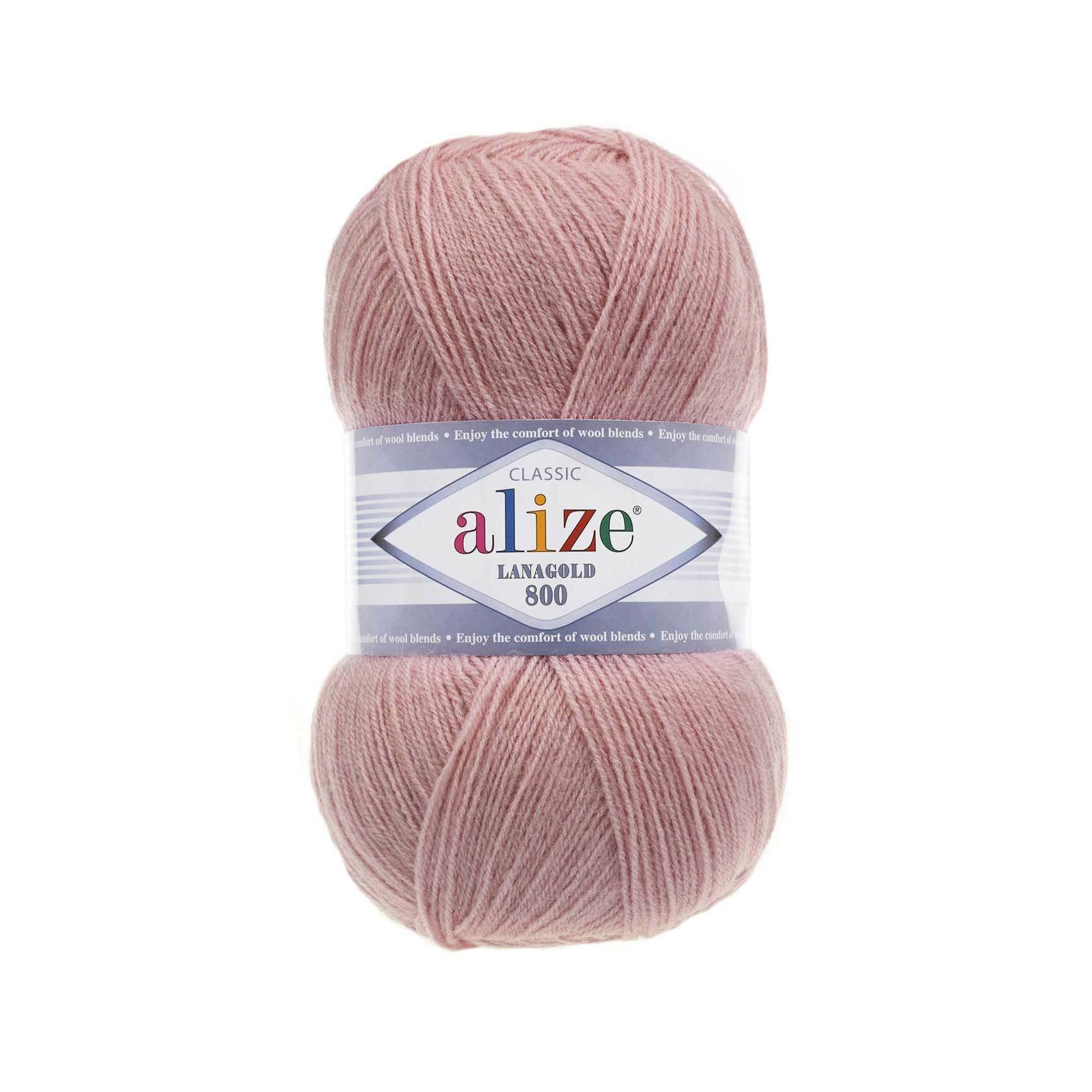 Пряжа Alize Lanagold 800 увядшая роза (173), 51%акрил/49%шерсть, 800м, 100г, 1шт