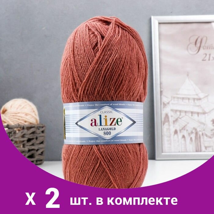 Пряжа Alize Lanagold 800 (Ланаголд 800) - 5 мотков Цвет: 36 терракот (Ланаголд 800) 49% шерсть, 51% акрил 100г 730м