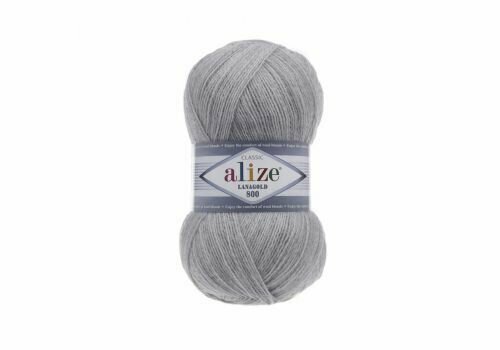 Пряжа Alize Lanagold 800 (Ланаголд 800) - 1 моток Цвет: 21 серый меланж 49% шерсть, 51% акрил 100г 730м