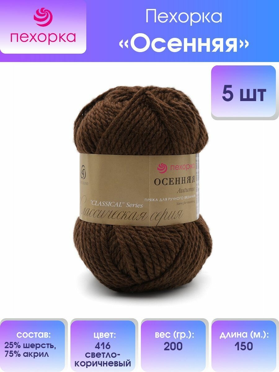 Пряжа для вязания Пехорка 'Осенняя', 200г, 150м (25% шерсть, 75% акрил) (416 светло-коричневый), 5 мотков информация: