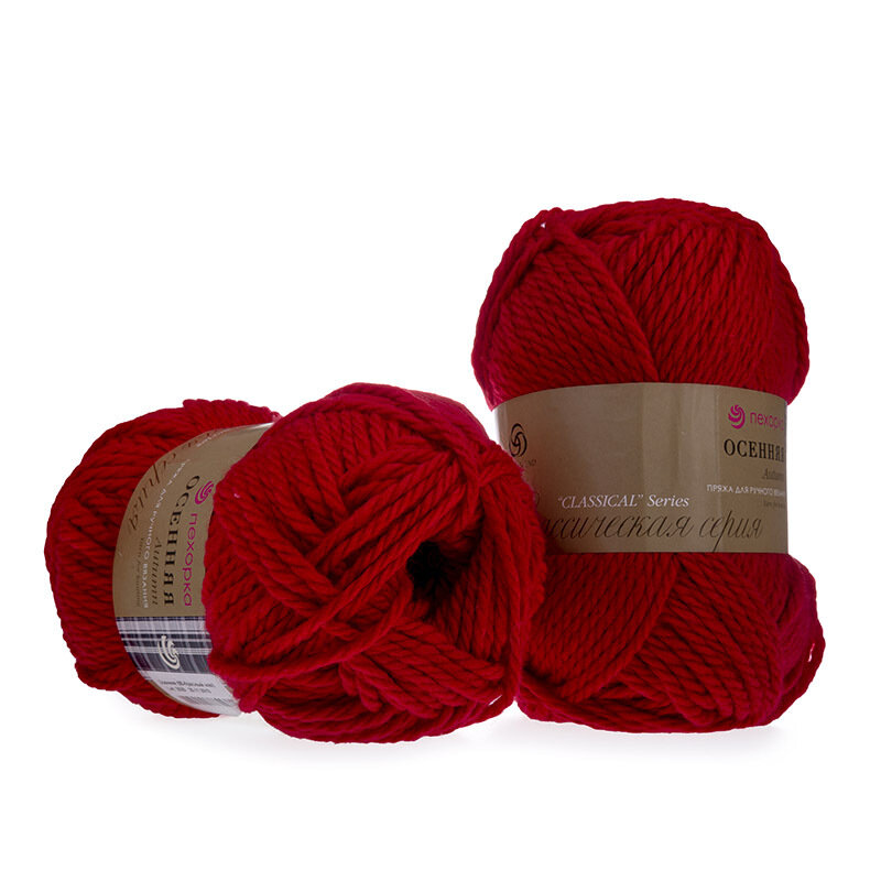 10 цен на Пряжа Пехорка Осенняя красный мак (088), 25%шерсть/75%акрил, 150м, 200г, 2шт