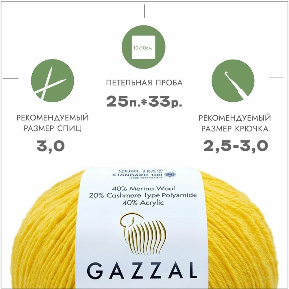 Пряжа Gazzal Baby Wool желтый (812), 40%шерсть мериноса/20%кашемирПА/40%акрил, 175м, 50г, 1шт информация: