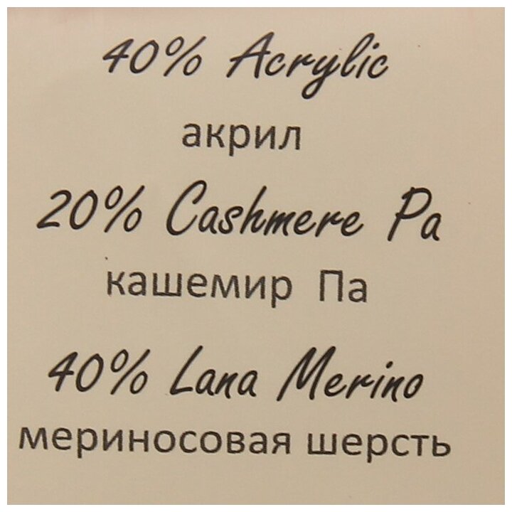 | Состав | 40% мериносовая шерсть / 20% кашемир / 40% акрил / % пух норки |