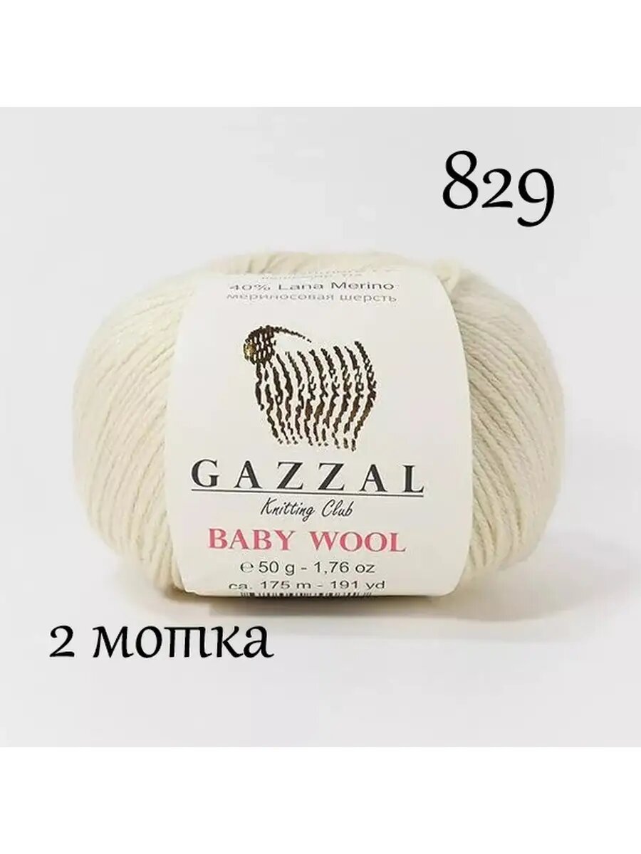Пряжа Gazzal Baby Wool экрю (829), 40%шерсть мериноса/20%кашемирПА/40%акрил, 175м, 50г, 2шт информация: