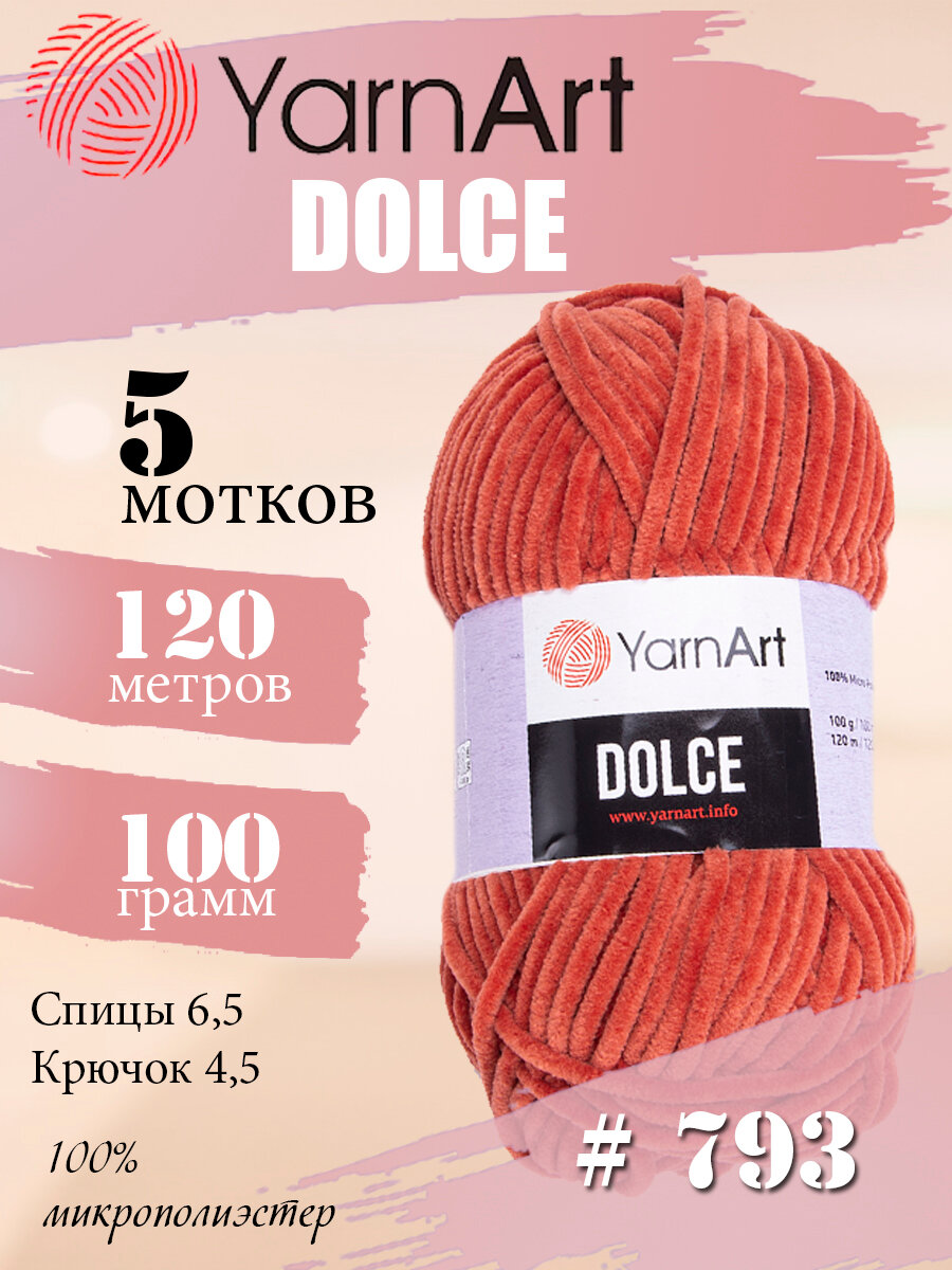 Пряжа YarnArt Dolce терракот (793), 100%микрополиэстер, 120м, 100г, 5шт информация: