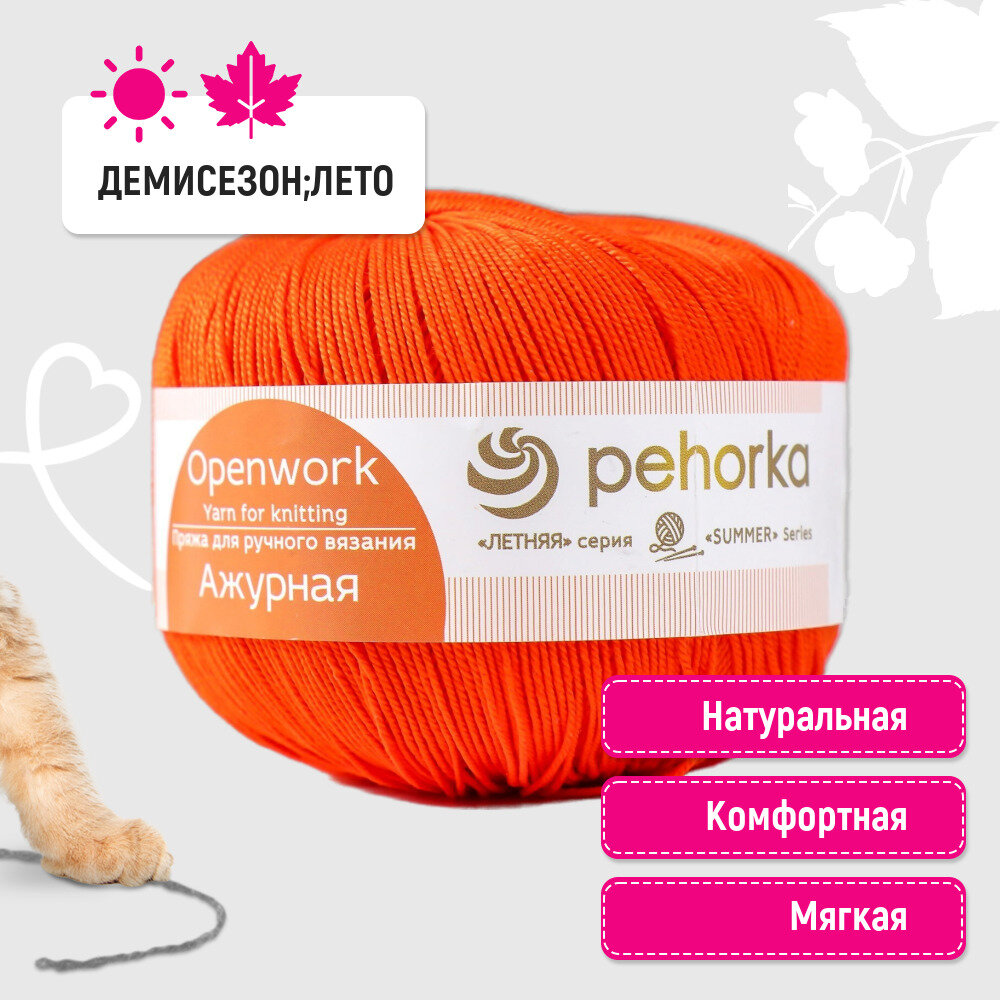 Пряжа для вязания Пехорка 'Ажурная', 50г, 280м (100% мерсеризованный хлопок) (194-Рыжик), 10 мотков