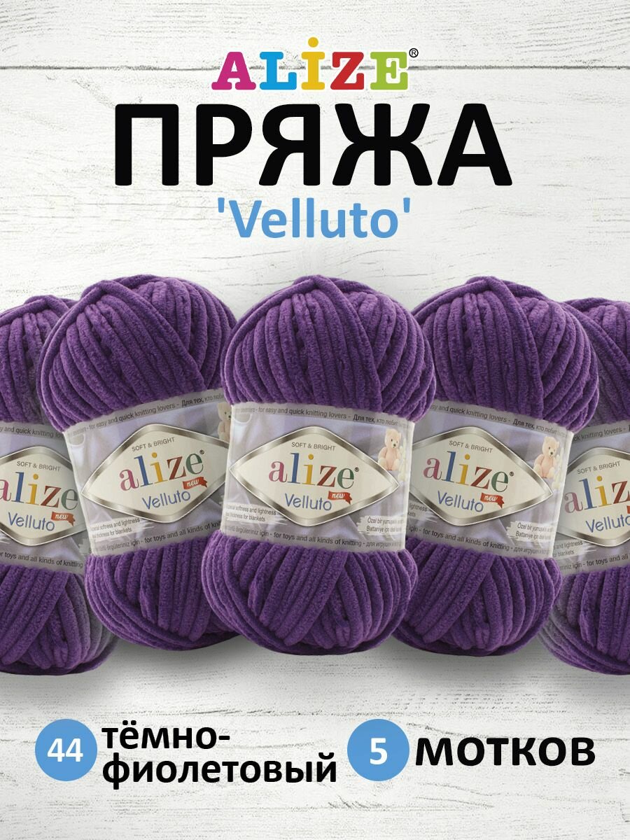 10 цен на Пряжа для вязания Alize 'Velluto', 100г, 68м (100% микрополиэстер) (44 тёмно-фиолетовый), 5 мотков