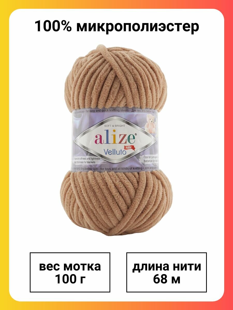 Пряжа для вязания ALIZE 'Velluto', 100г, 68м (100% микрополиэстер) (429 верблюжий), 5 мотков информация: