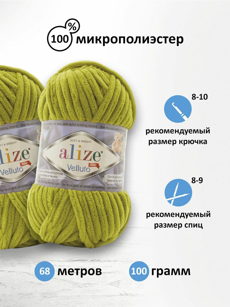 Пряжа VELLUTO (Alize), фисташка - 11, 100% микрополиэстер, 5 мотков, 100 г, 68 м. 1 402 ₽