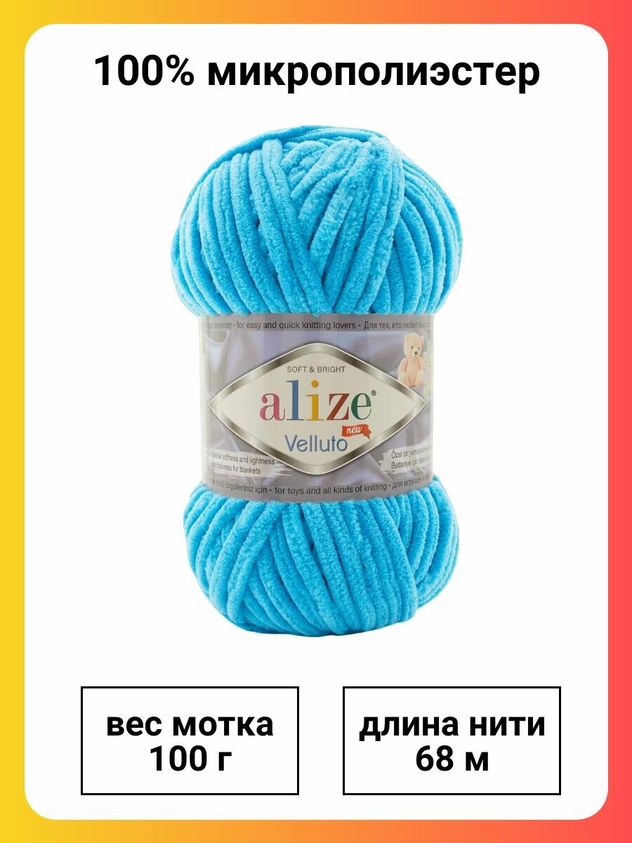 Пряжа Alize Velluto № 414 (68 м) 100 гр. лазурный, 1 шт. 231 ₽