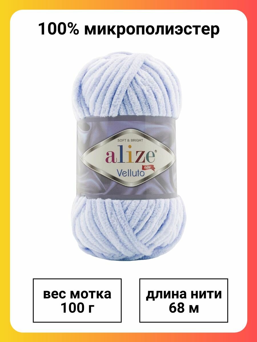 Пряжа Alize Velluto 875 детский голубой, 100 г, 68 м, 5 штук информация: