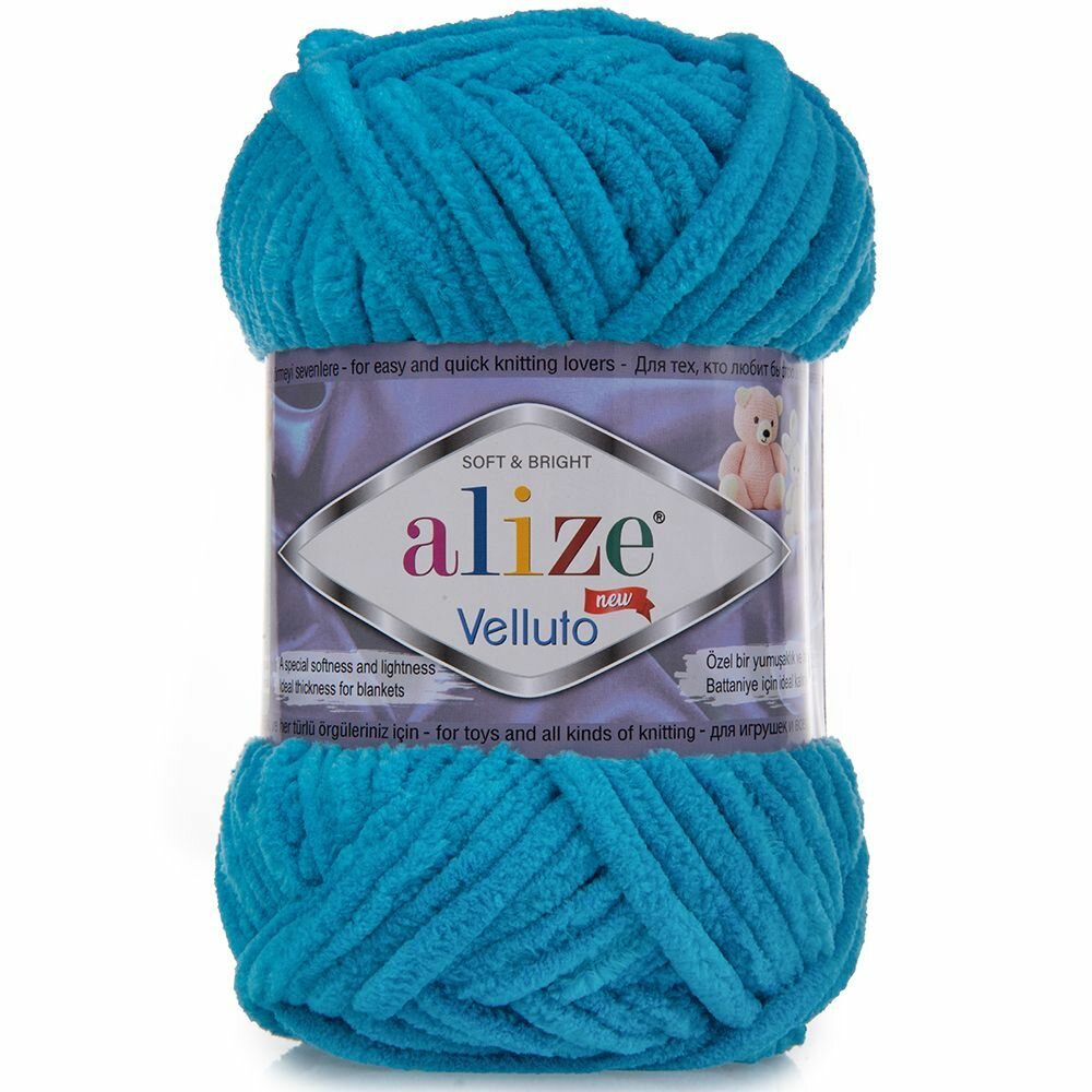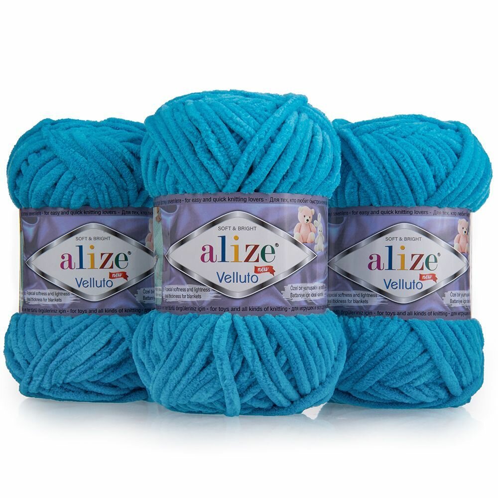 Пряжа Alize Velluto бирюзовый (16), 100%микрополиэстер, 68м, 100г, 3шт информация: