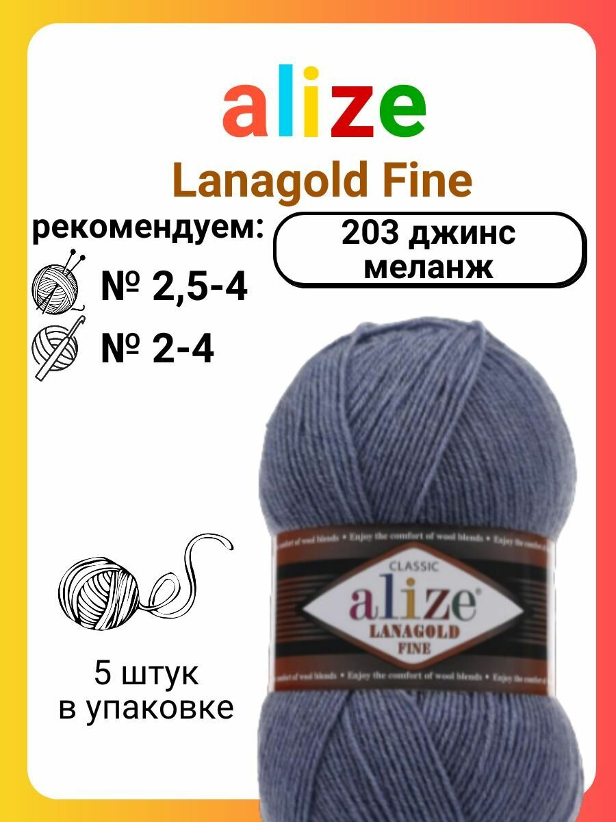 Пряжа для вязания ALIZE 'Lanagold fine', 100г, 390м (49% шерсть, 51% акрил) (203 джинс меланж), 5 мотков информация: